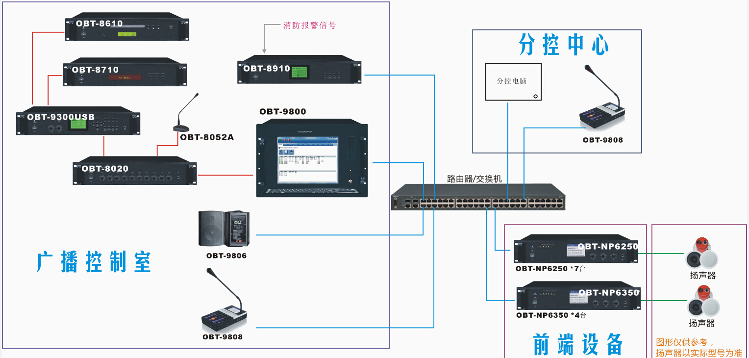1、公共廣播系統按照數字廣播系統方式進行設置;廣播系統按照樓層和功能劃分多個廣播回路(分區)。每個區域可獨立控制,也可進行全區域廣播(播放背景音樂+語音通知);